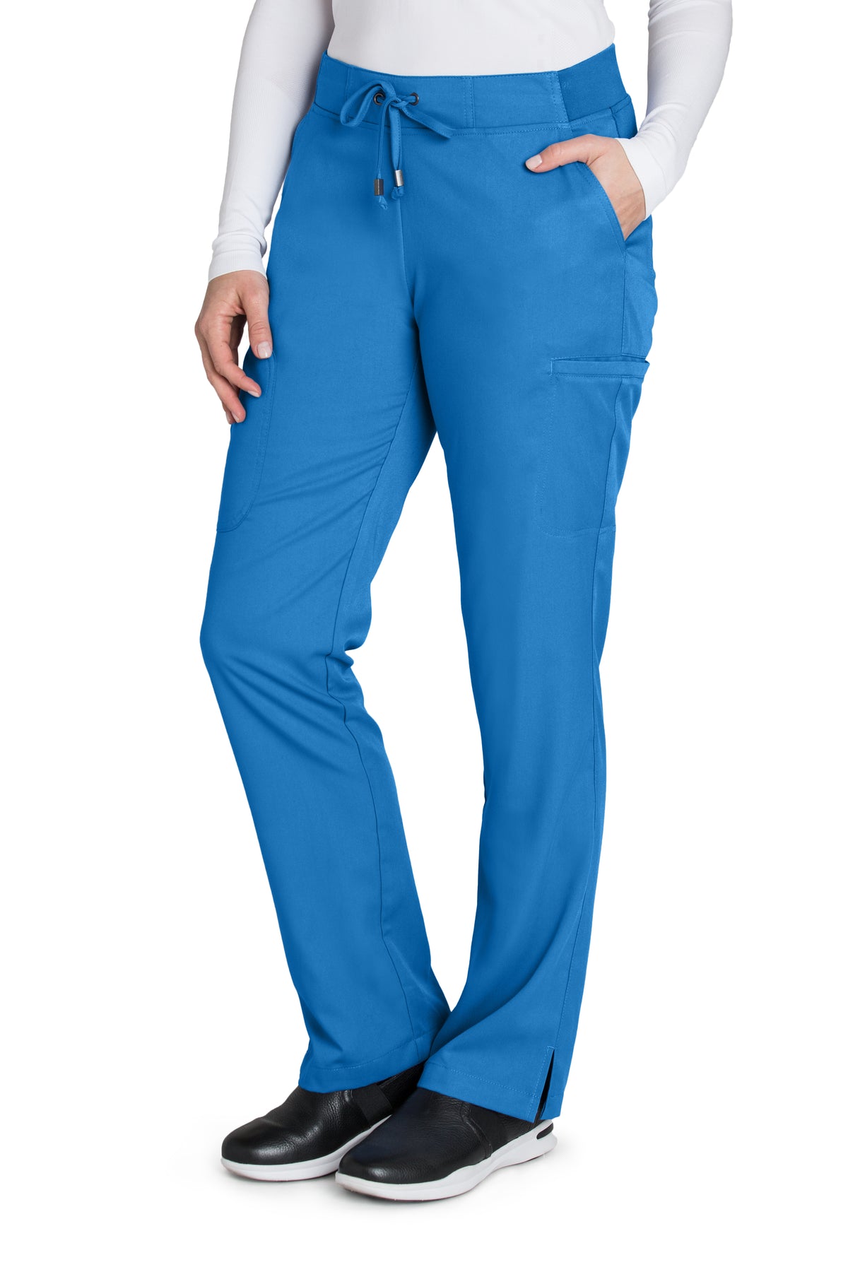 El pantalón de seis bolsas de Grey's Anatomy cuenta con espacios para todas tus necesidades de trabajo diario, incluido una bolsa doble tipo cargo para mantener el volumen al alcance y fuera del camino. Además, un moderno tejido de poliéster y rayón suave y moderno le ofrece libertad de movimientos para lo que se le presente.
